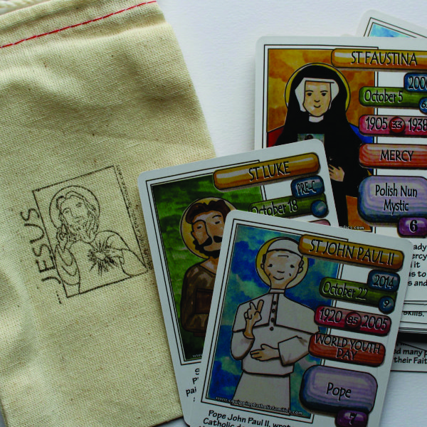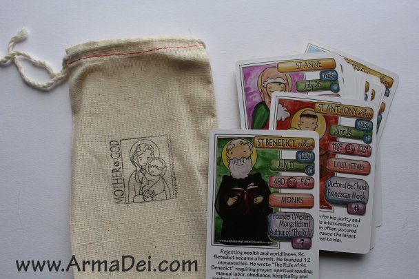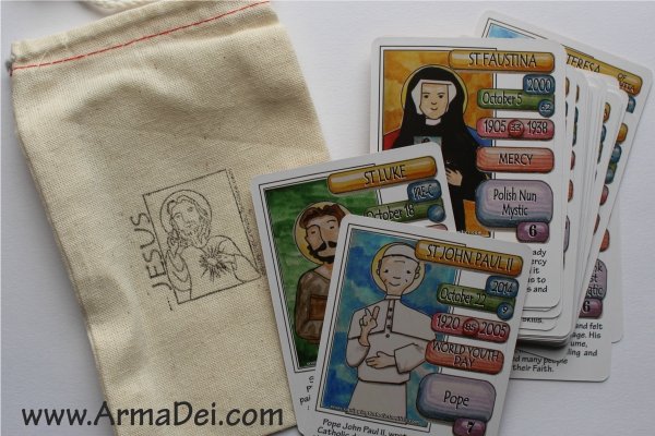 The only SAINTS cards you can play real card games with! 54 Saint Cards in a glossy printed box.
